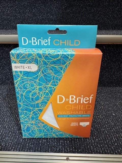 Girls’ washable briefs for light to medium incontinence. Cotton/Polyester. Absorbs 300mls The D Brief features a soft cotton/polyester pad lining, with bonded waterproof backing both front and back. This maximizes absorbency and provides the wearer with comfort security and confidence. White only THIS IS A RUN OUT LINE ONCE SOLD WE CANNOT ORDER MORE